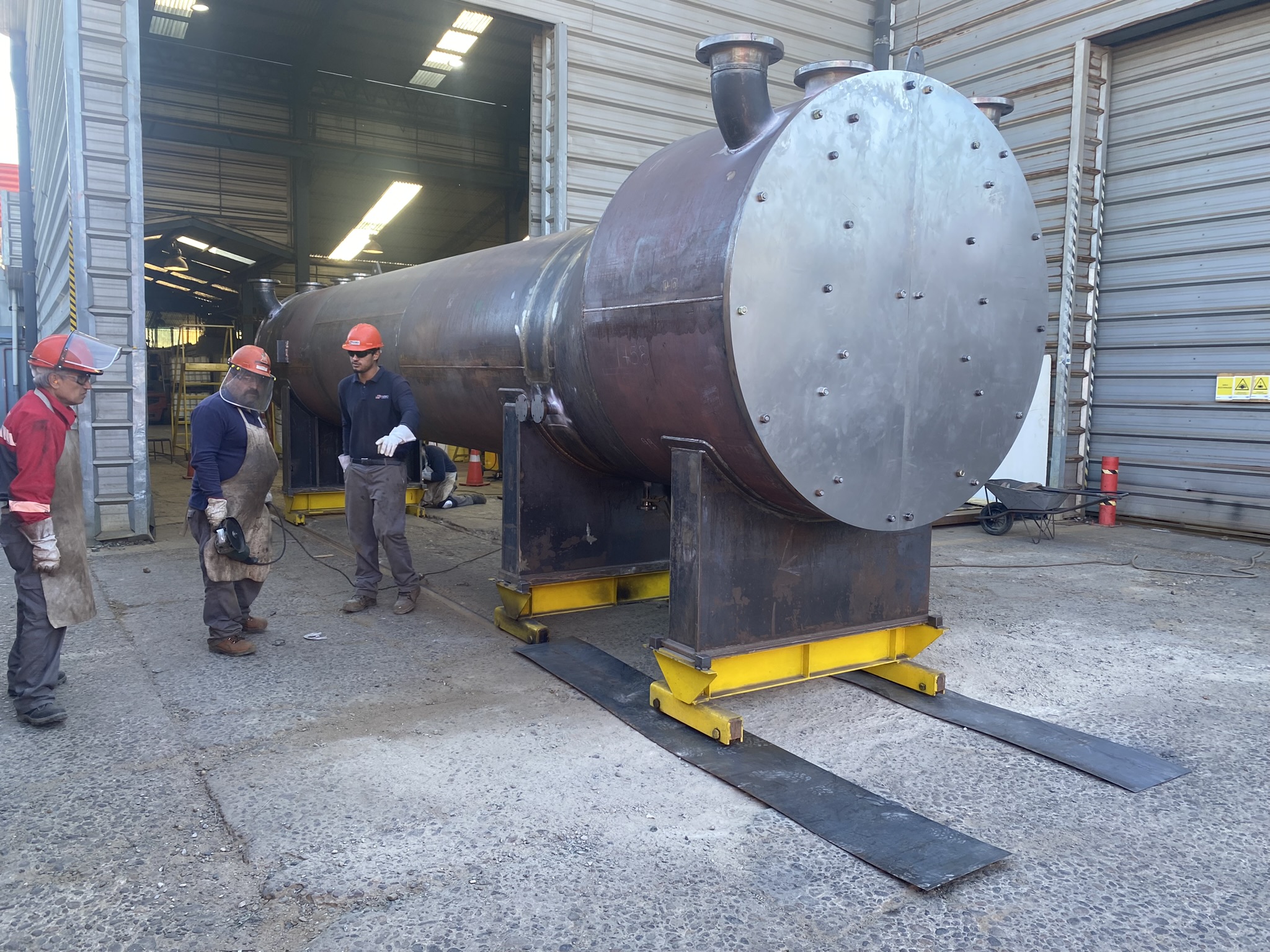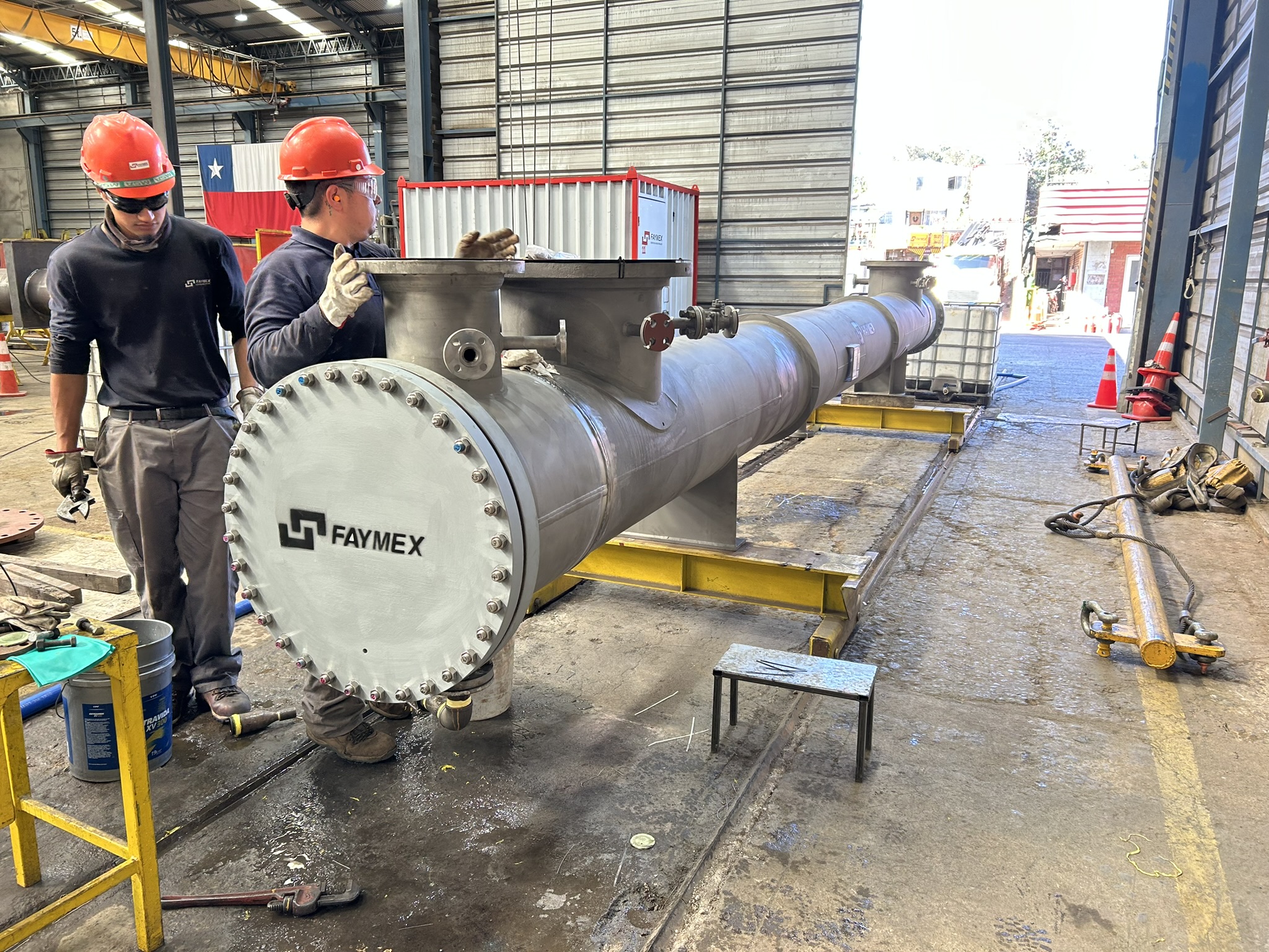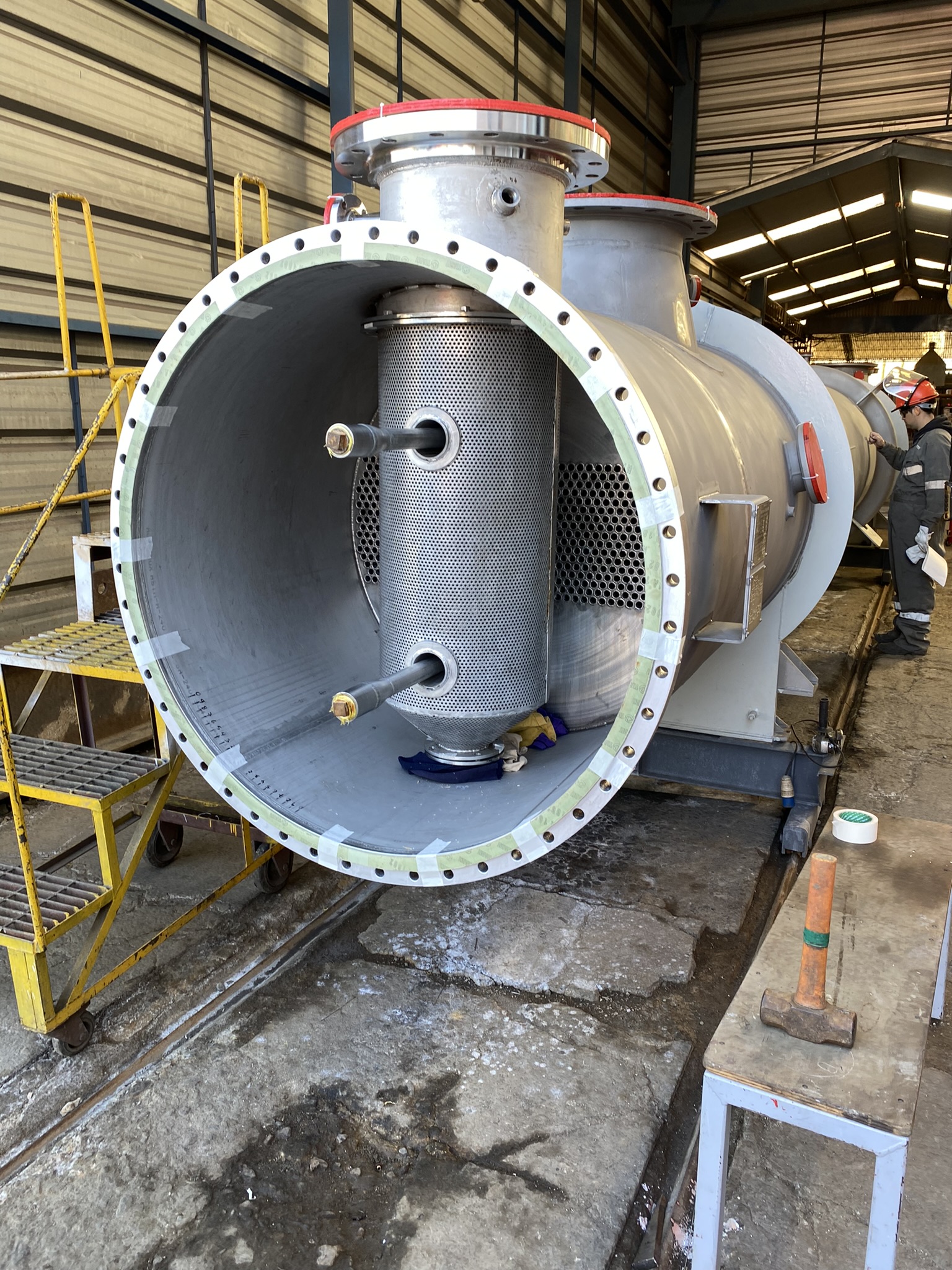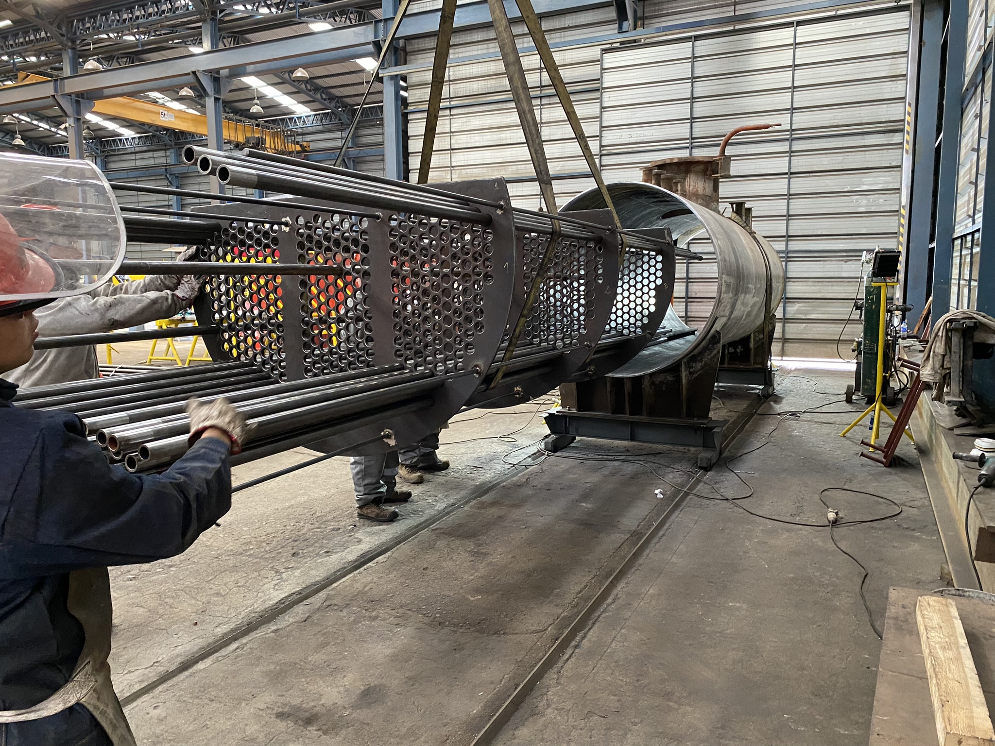 Fabricación y montaje de intercambiadores de calor tipo tubo y carcasa, incluyendo diseño, construcción y ensamblaje de haz tubular, carcasa, cabezales, boquillas y conexiones estructurales. Producción bajo normativa ASME Sección VIII y procedimientos de soldadura calificados, con control dimensional y pruebas de presión según especificación.